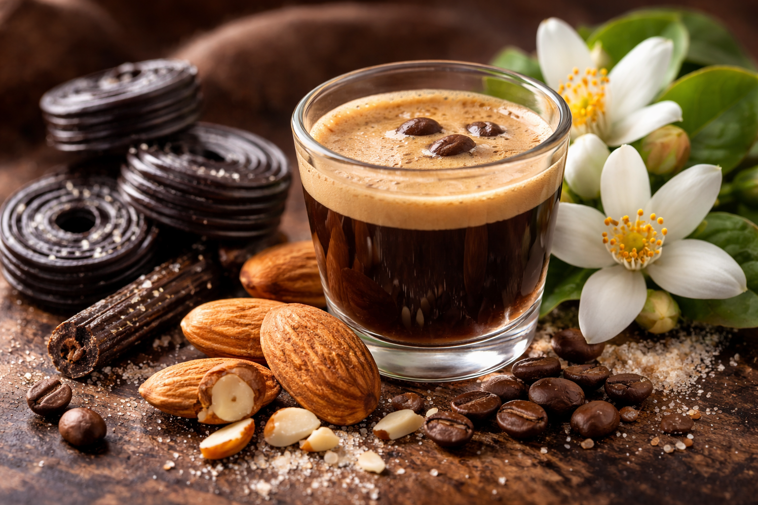 Il carattere del caffè si fonde con la mandorla amara e la liquirizia creando una firma gourmand raffinata e femminile.